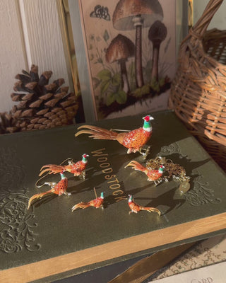Bring a touch of the British countryside to your ears with these beautifully enamelled, chic stud earrings. Each miniature pheasant is exquisitely detailed and brought to life with vibrant, hand-painted enamel in rich russet, 14 carrot gold plating, and green tones. These delightful studs offer a subtle yet captivating nod to nature's beauty, perfect for everyday wear or adding a country touch to any outfit.