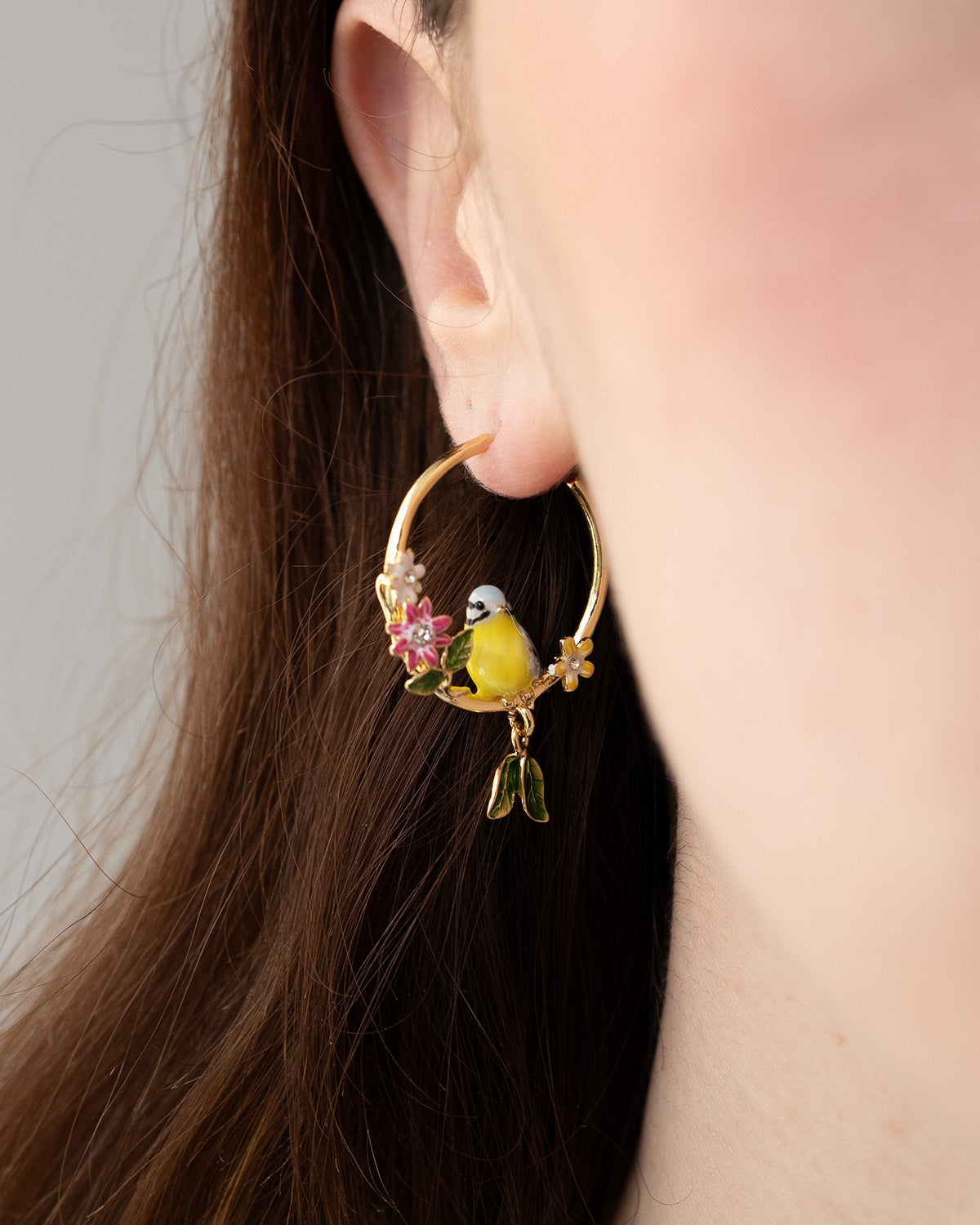 New this year, the Songbird Serenade Hoops build on the story of our much-loved Songbird Serenade necklace, transforming the joyful gathering of songbirds into a wearable, everyday statement. Delicately detailed birds perch among hand-painted blossoms, bringing the charm of birdsong and garden moments to life with every movement.