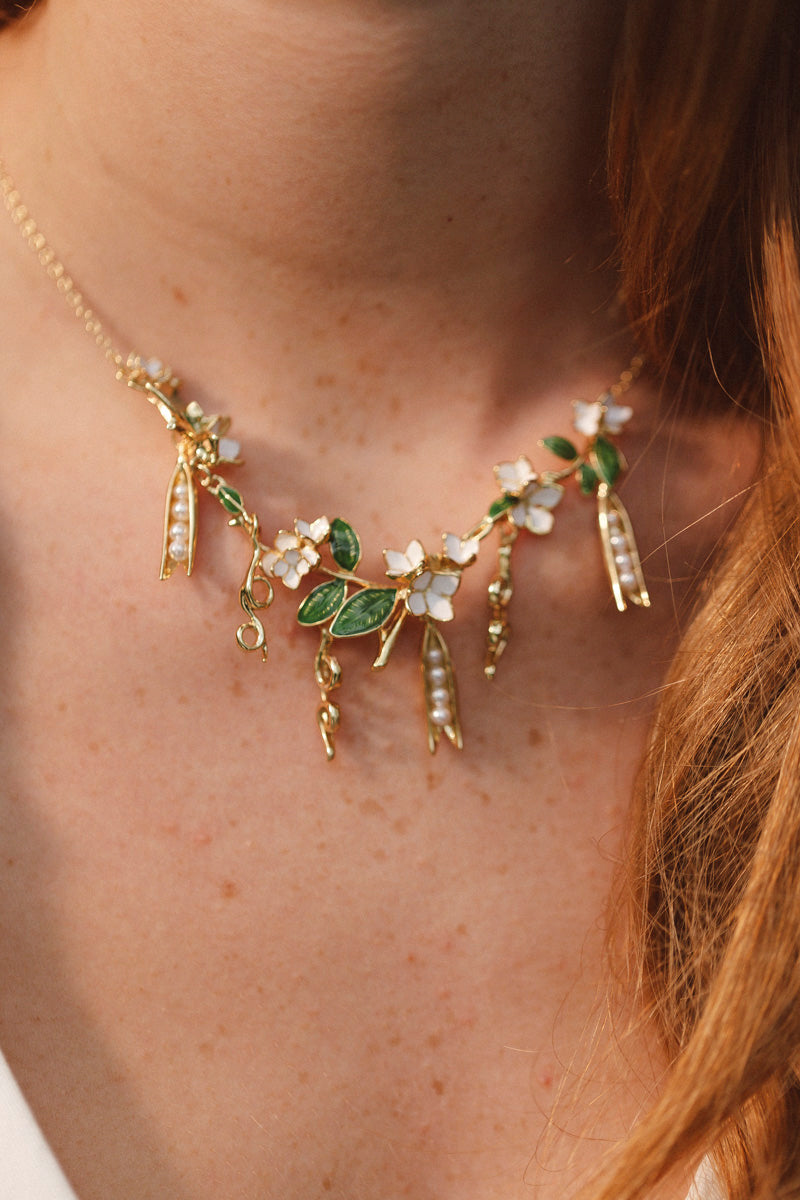 Our Peapod Necklace celebrates delicate design and thoughtful craftsmanship. Suspended from a fine chain, the multiple peadpods tell a story woven into every detail.