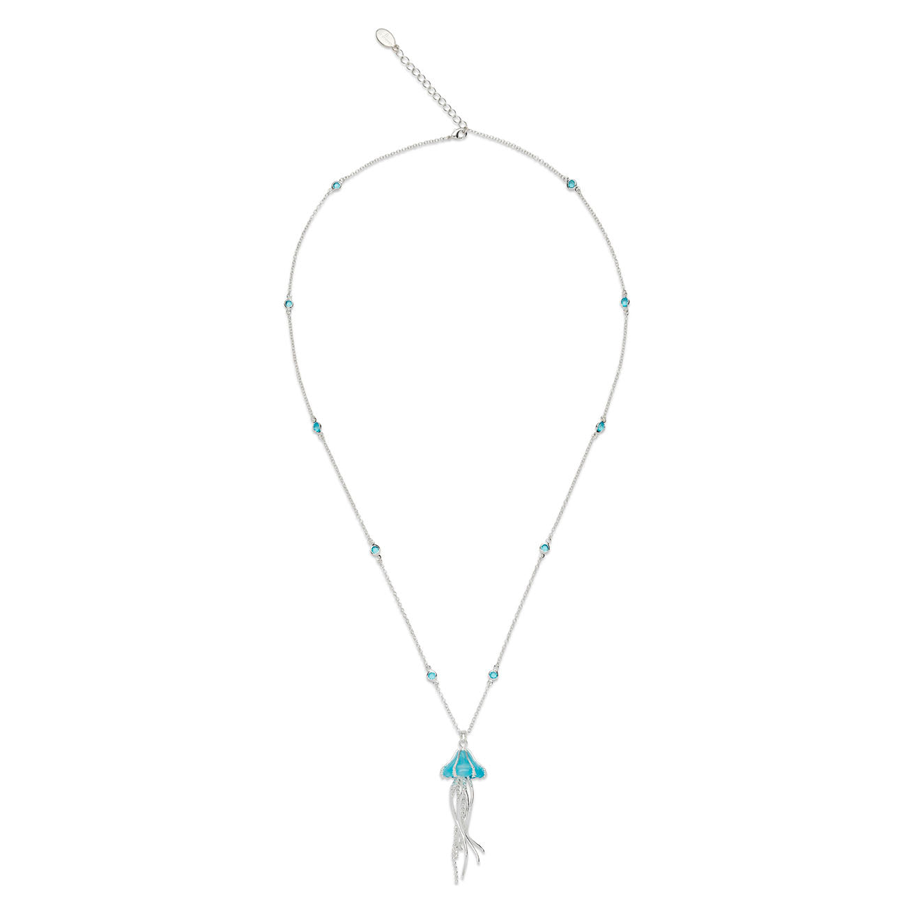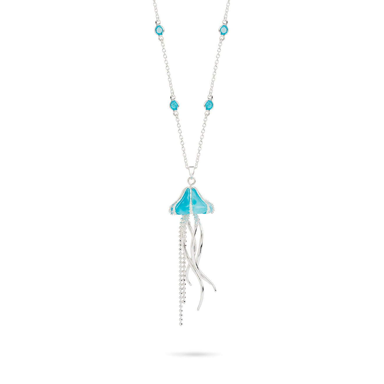 Drift into an underwater dream with the Blue Jellyfish Long Pendant. Inspired by the quiet magic of the ocean, this elegant design captures the gentle movement and glowing beauty of a jellyfish suspended in time.