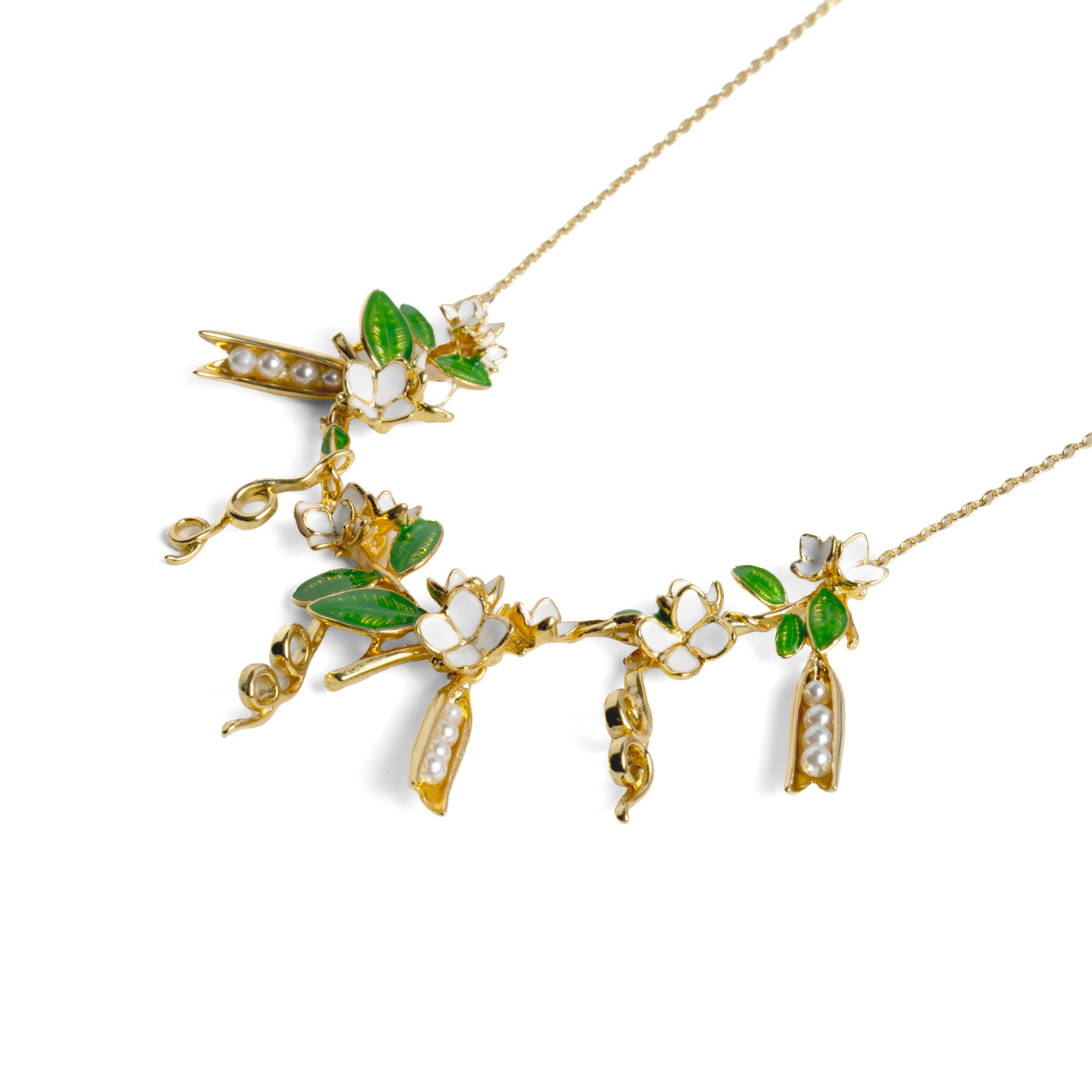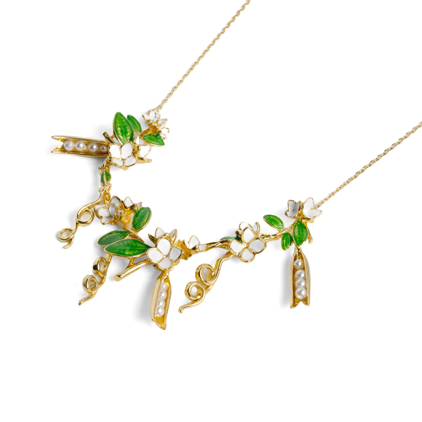 Our Peapod Necklace celebrates delicate design and thoughtful craftsmanship. Suspended from a fine chain, the multiple peadpods tell a story woven into every detail.