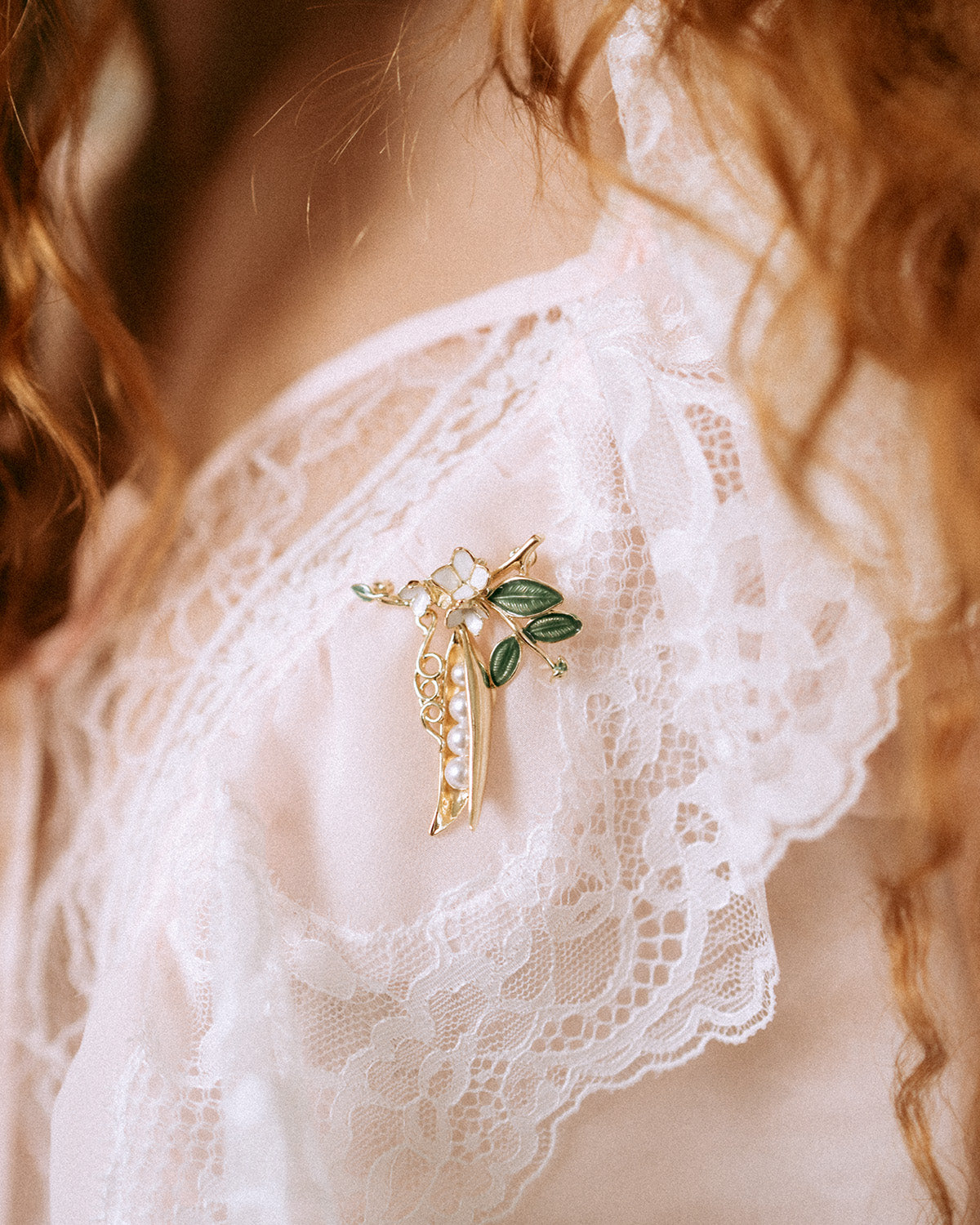 Inspired by the much-loved fairy tale, Princess and the Pea, this Peapod Brooch is a playful nod to the tiniest details that make all the difference. Beautifully detailed and full of charm, it captures the magic of storytelling through nature — where even the smallest pea has a tale to tell.