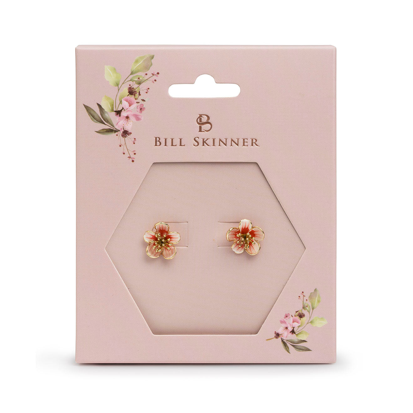 Delicate Apple Blossom Stud Earrings. Delicate apple blossom, its petals painted in soft hues and accented with a touch of sparkle.