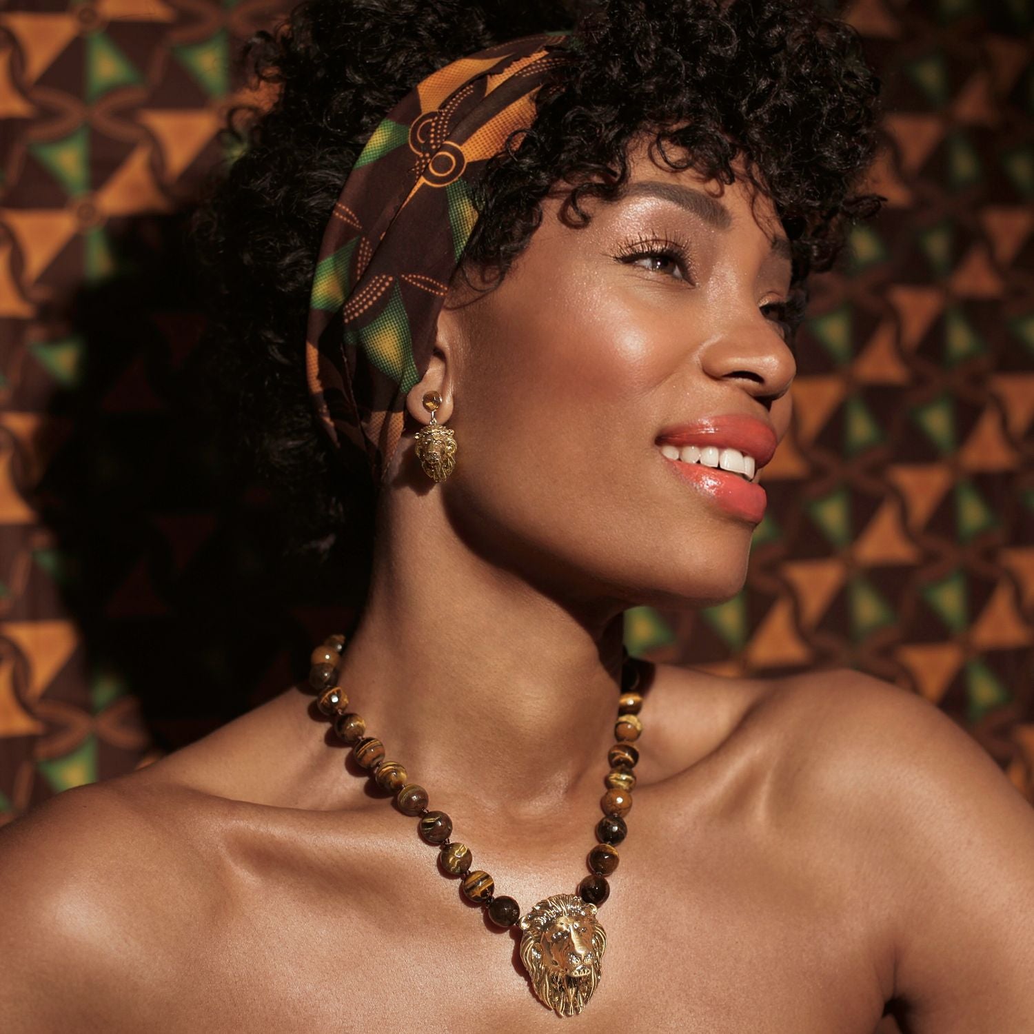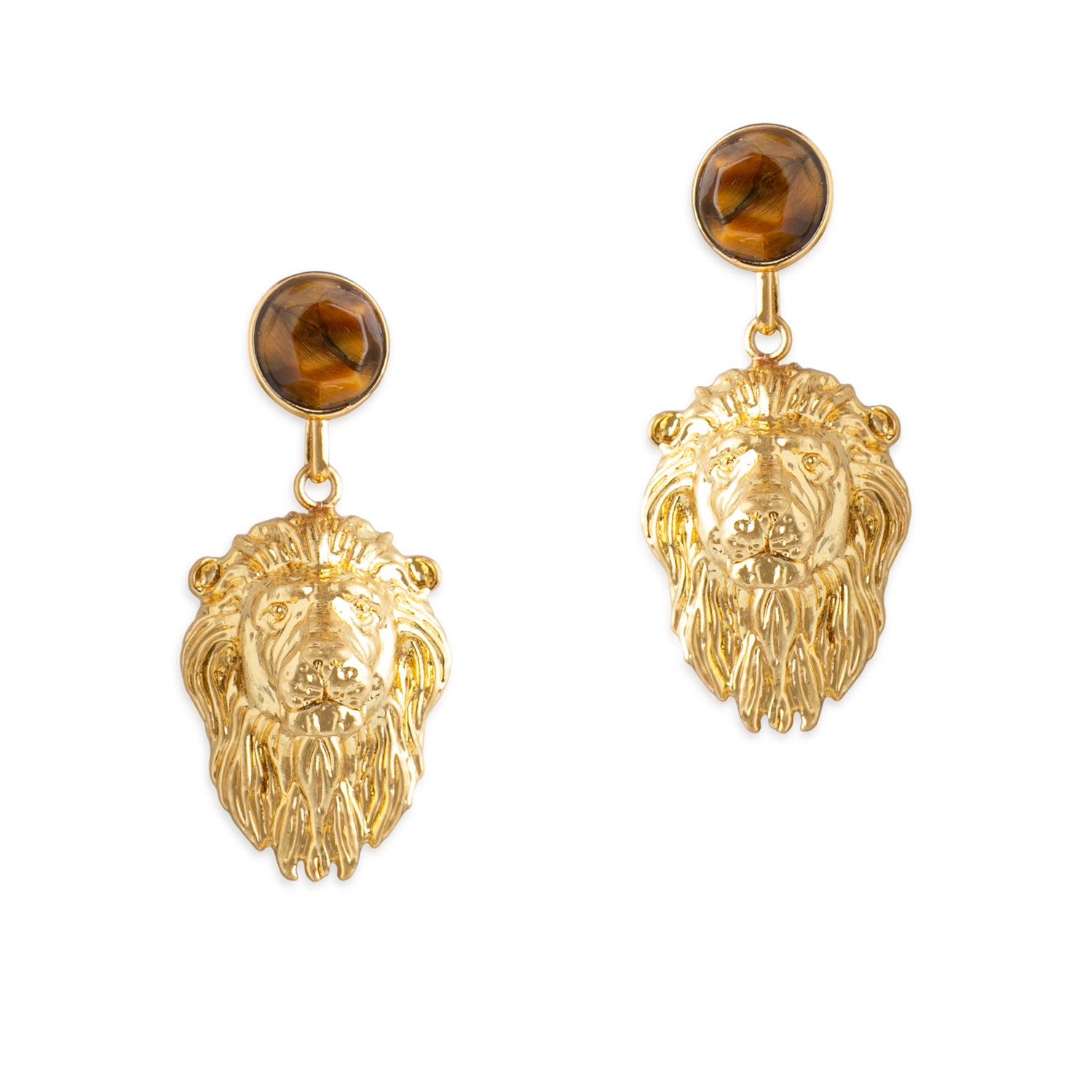 Unleash Your Inner Strength with these Lion Head & Tiger's Eye Drop Earrings