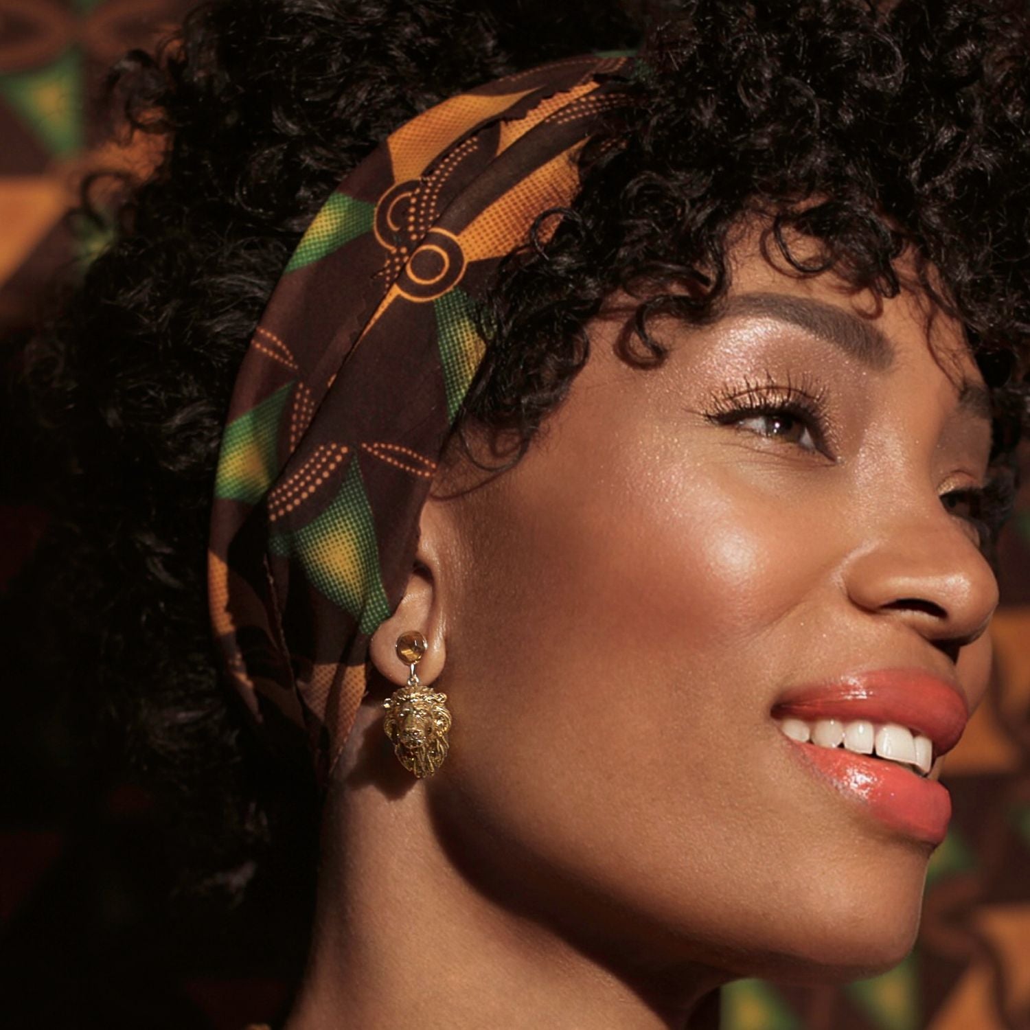 Command attention with these striking drop earrings, a symbol of power and courage brought to life by Bill Skinner Studio. Each earring features a magnificently sculpted lion head, its gaze both regal and fierce. The beautiful gold finish with the while the mesmerizing tiger's eye stone adds a touch of earthy mystique.