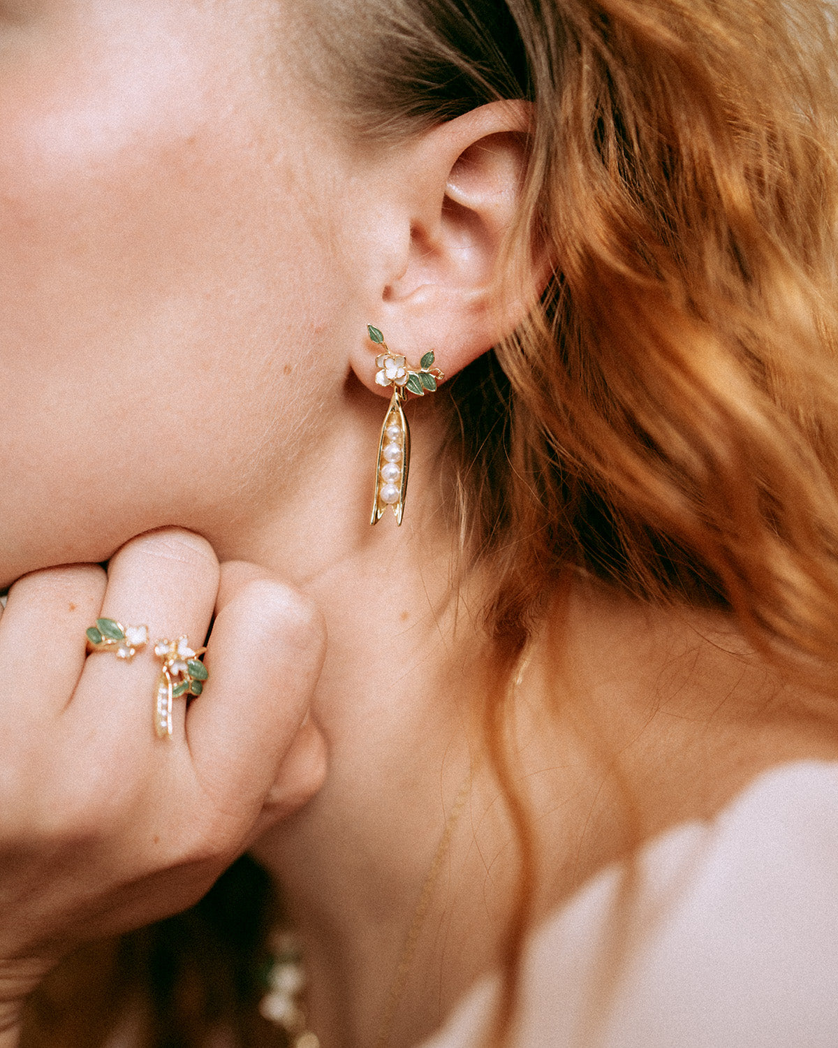 These Peapod Drop Earrings bring gentle movement and playful elegance to a fairy-tale inspired design. Drawing from The Princess and the Pea, each pod is lovingly detailed — a reminder that true beauty often lies in the smallest, most thoughtful details.